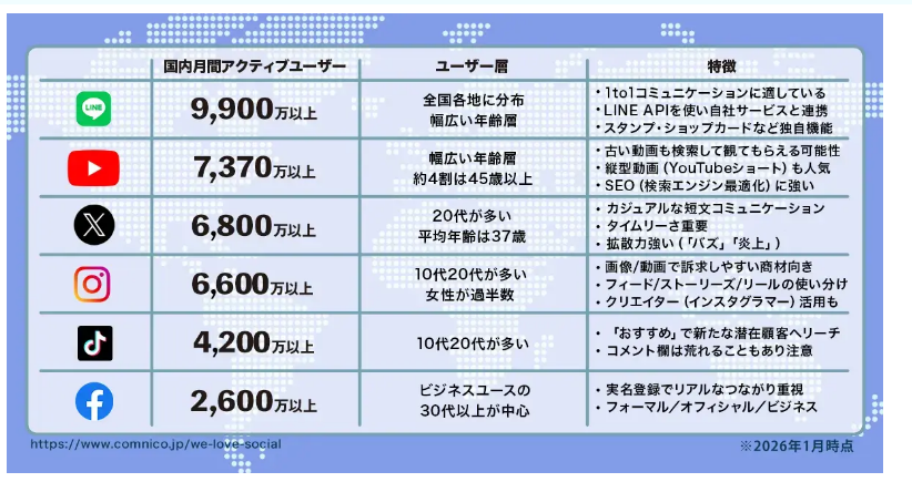 SNSは生活の一部として定着しており、企業のマーケティング活動でも重要な役割を担っています。SNS 利用者の特徴や媒体ごとの特性、アルゴリズムの基本を理解することは、単なるリスク回避だけでなく情報発信の戦略立案にも役立ちます。