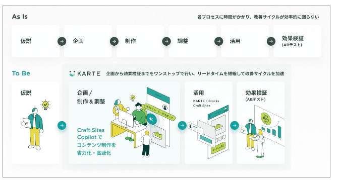 また、AIを活用することで、短時間で複数のバリエーションを試すことが可能になり、ABテストやパーソナライズ施策といったマーケティング戦略における制作の柔軟性も高まる。これは、顧客体験の最適化というKARTEの本来の目的とも親和性が高い。