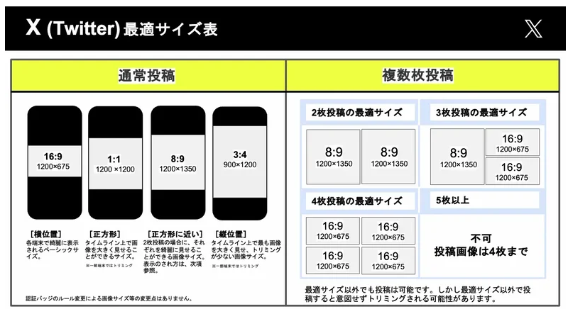 X では横長・縦長・正方形など複数パターンをサポートしています。
