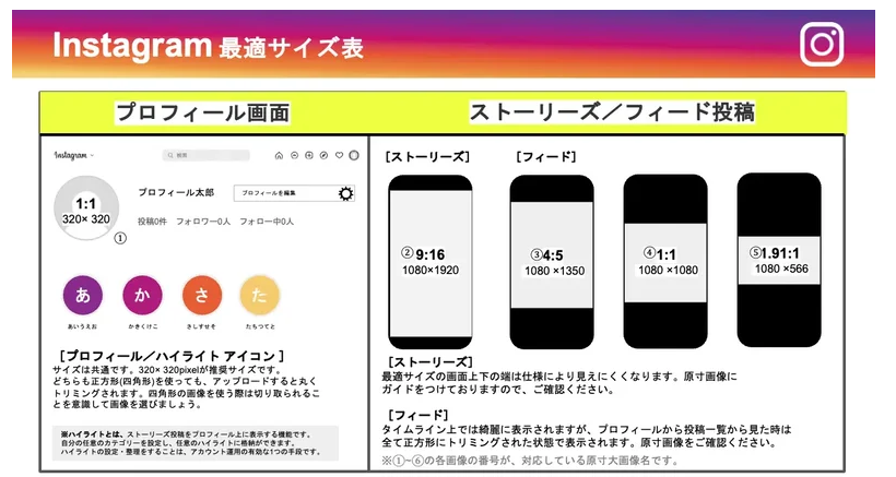 Instagram では画像・動画の比率や表示形式が多様化し、投稿用途によって最適サイズが異なります。