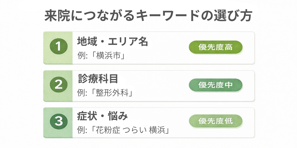 単にキーワードを詰め込むのではなく、患者が安心して来院できる情報提供を意識することが重要です。