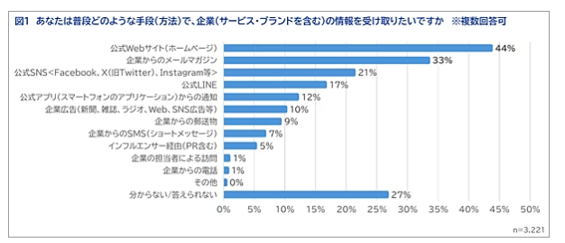 今回の調査からは、企業情報の受け取り方に対する生活者の意識が多様化していることが明確になった。公式Webサイトの人気は依然として高いものの、SNSやメール、アプリ、SMSといった複数チャネルを横断した戦略設計が求められる時代に突入している。
