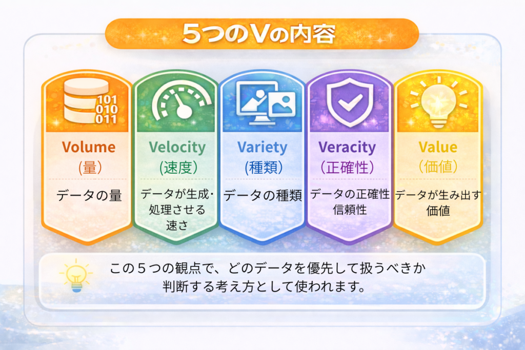 データ整理では次の「5つのV」が重要とされています。